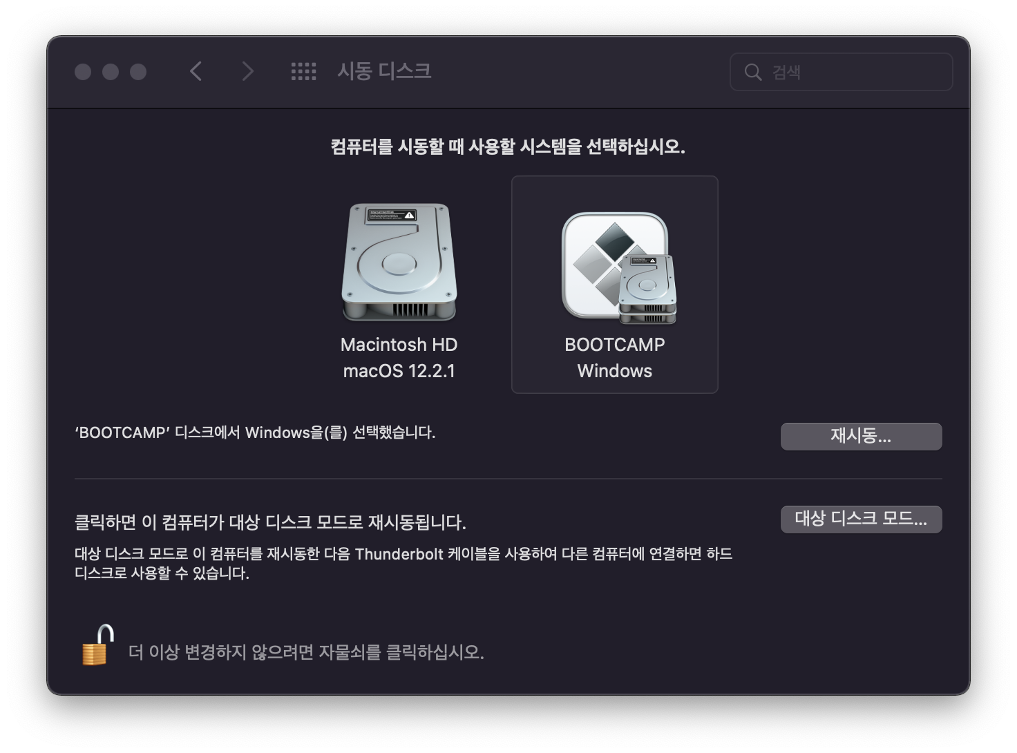 ๋ถํธ์บ ํ(BOOTCAMP Windows OS)์๋์ฐ์ฆ ์ด์์ฒด์ ์ค์น๋ ์ํ๋ฅผ ํ์ธํ ์ ์์ต๋๋ค. ์ผ์ชฝ์ ๋งฅ ์ด์์ฒด์ (Macintosh HD mac OS), ์ค๋ฅธ์ชฝ์ ์ถ๊ฐ ์ค์นํ ๊ธฐ๋ฅ์ฑ ๋ถํธ ์บ ํ(BOOTCAMP)์๋์ฐ์ฆ ์ด์์ฒด์ ์ ๋๋ค.