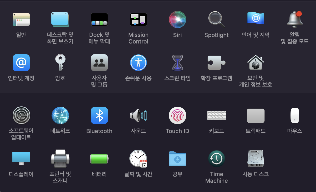 mac OS ๋ฐํํ๋ฉด ๋งจ ์๋์ชฝ [๋ฉ๋ด๋ฐ]-[์์คํ ํ๊ฒฝ ์ค์ ]์ ์คํํฉ๋๋ค. [์์คํ ํ๊ฒฝ ์ค์ ] ์ฐฝ์ด ๋ํ๋๊ฒ ๋๋๋ฐ [์๋ ๋์คํฌ]๋ฅผ ์ฐพ์์ ์คํํฉ๋๋ค.